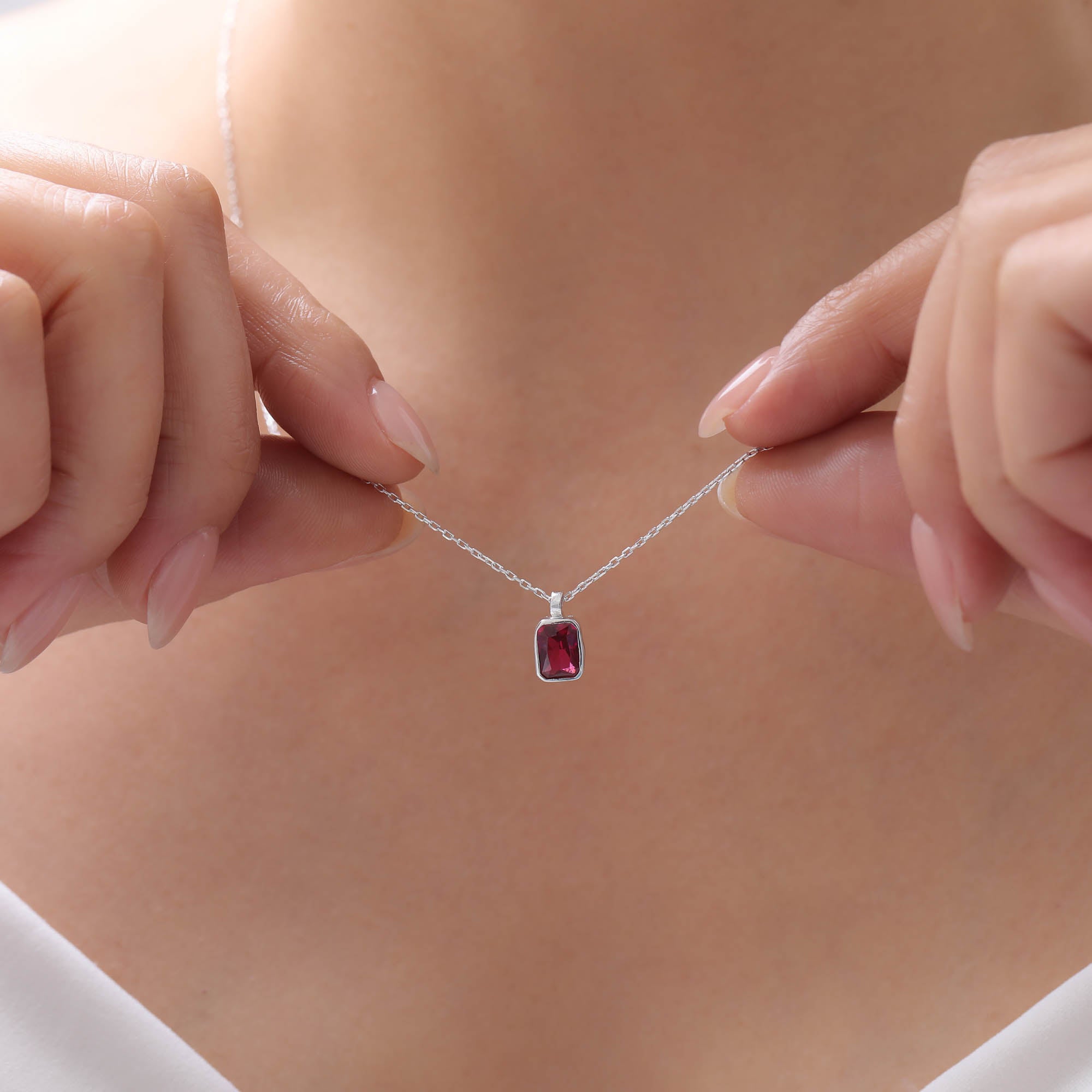 Baguette Cut Birthstone Sterling Silver Necklace