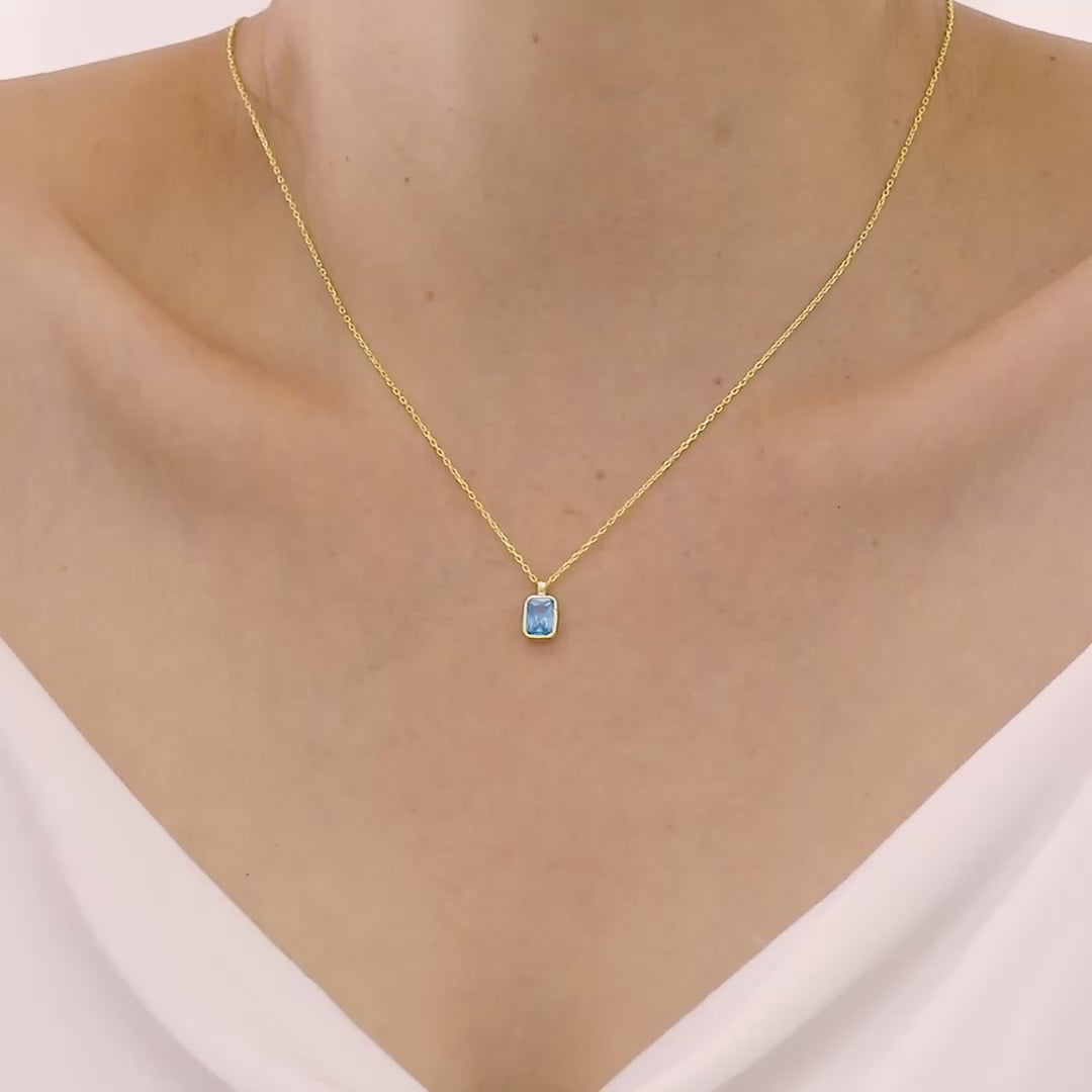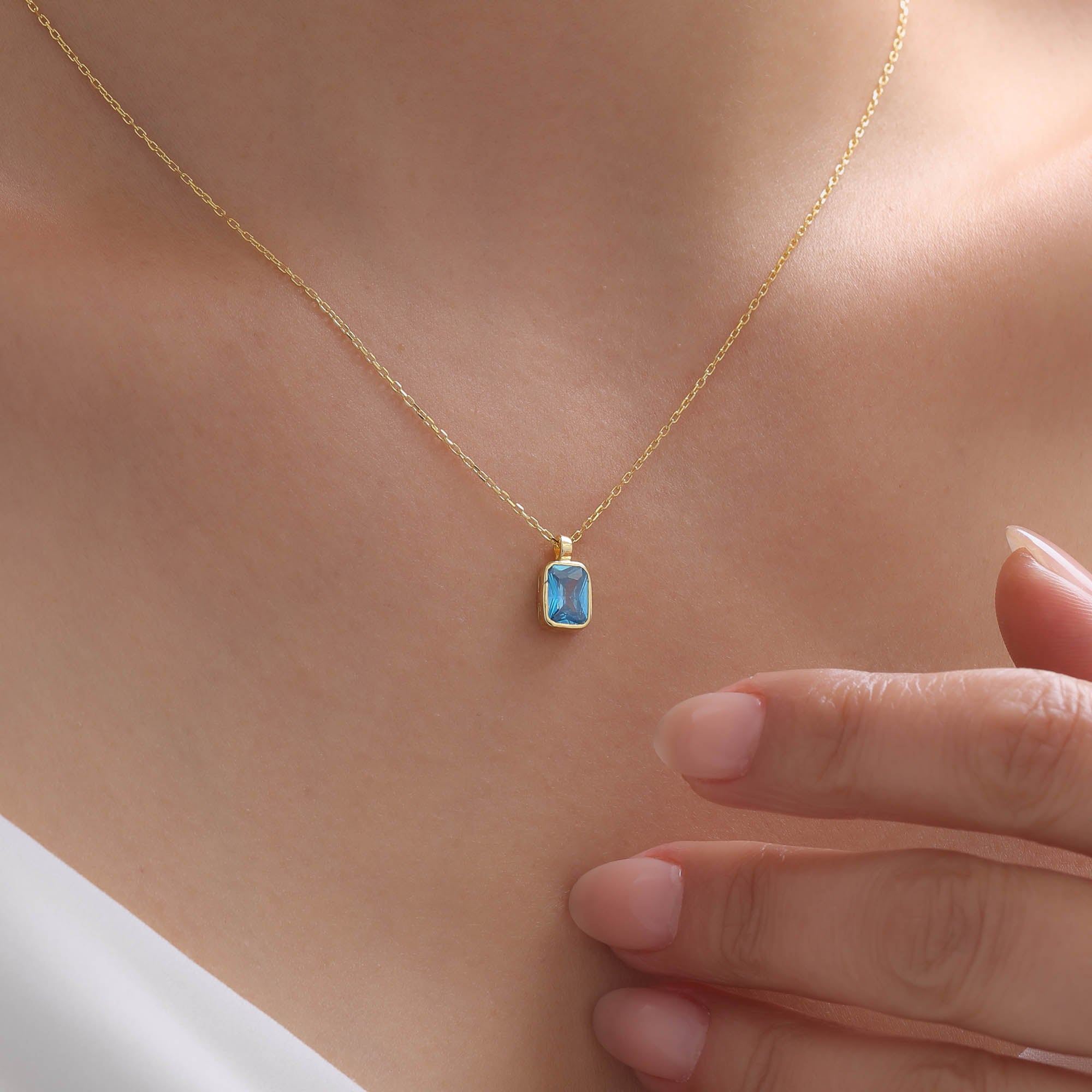 Embrace the elegance of a bygone era with a modern twist. Our Emerald Cut Birthstone Necklace features a stunning, rectangular-cut gemstone that highlights the stone's clarity and depth. Known for its sophisticated "hall of mirrors" effect, this cut offers a subtle yet captivating flash of light that differs from the sparkle of traditional round cuts.