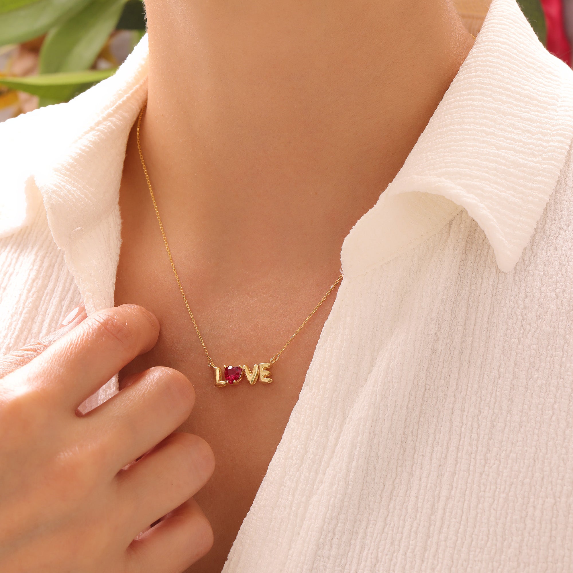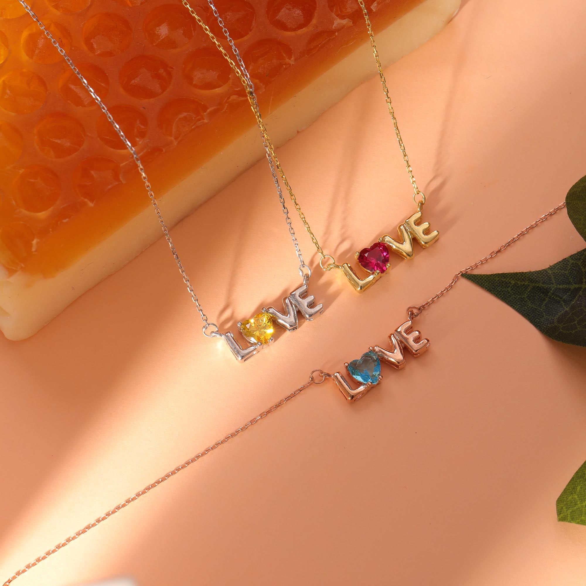 • Emotional Design: The "LOVE" inscription, featured in an elegant script font, is the centerpiece of the necklace. Often, a vibrant birthstone is set in place of the letter 'O', adding a personal touch to the design.