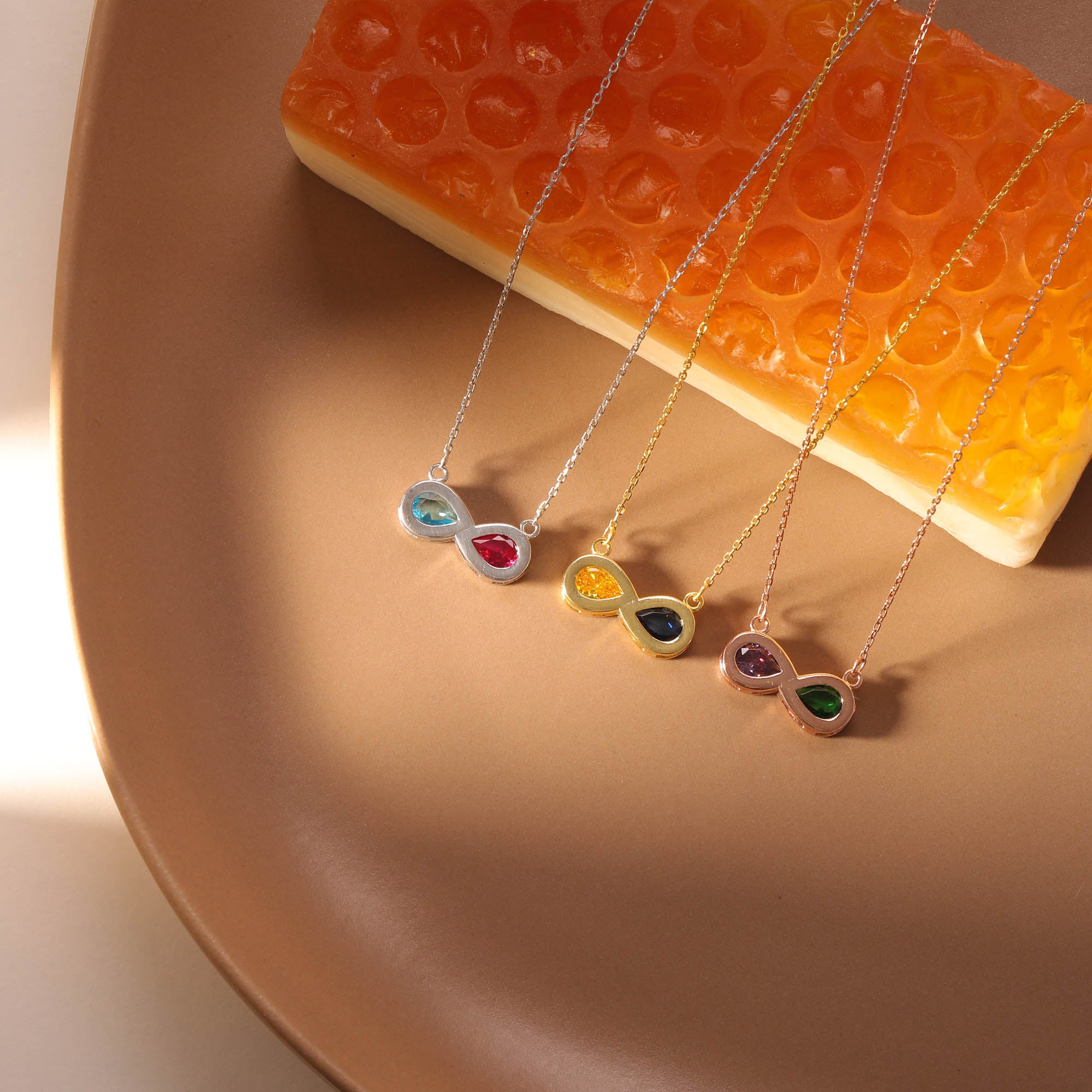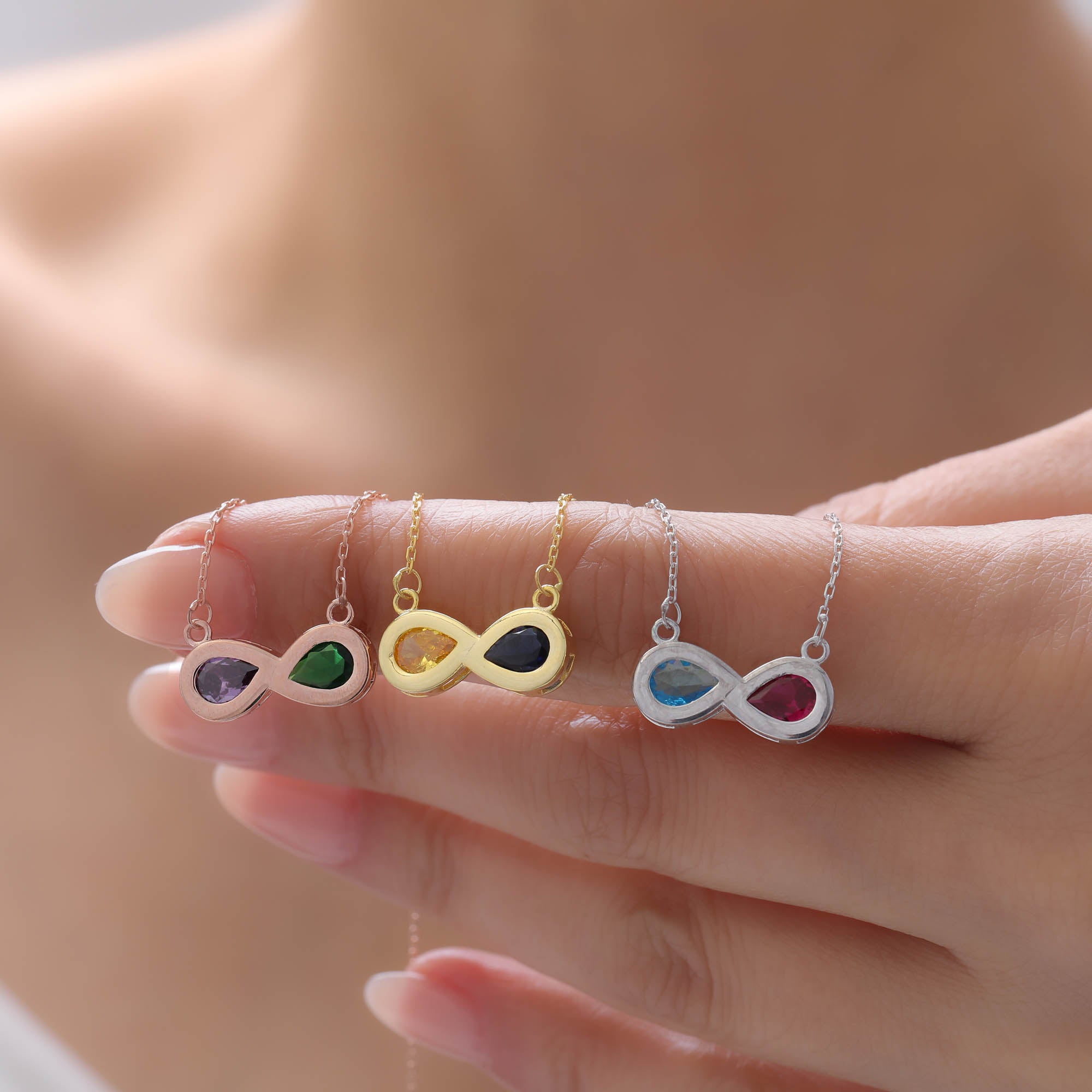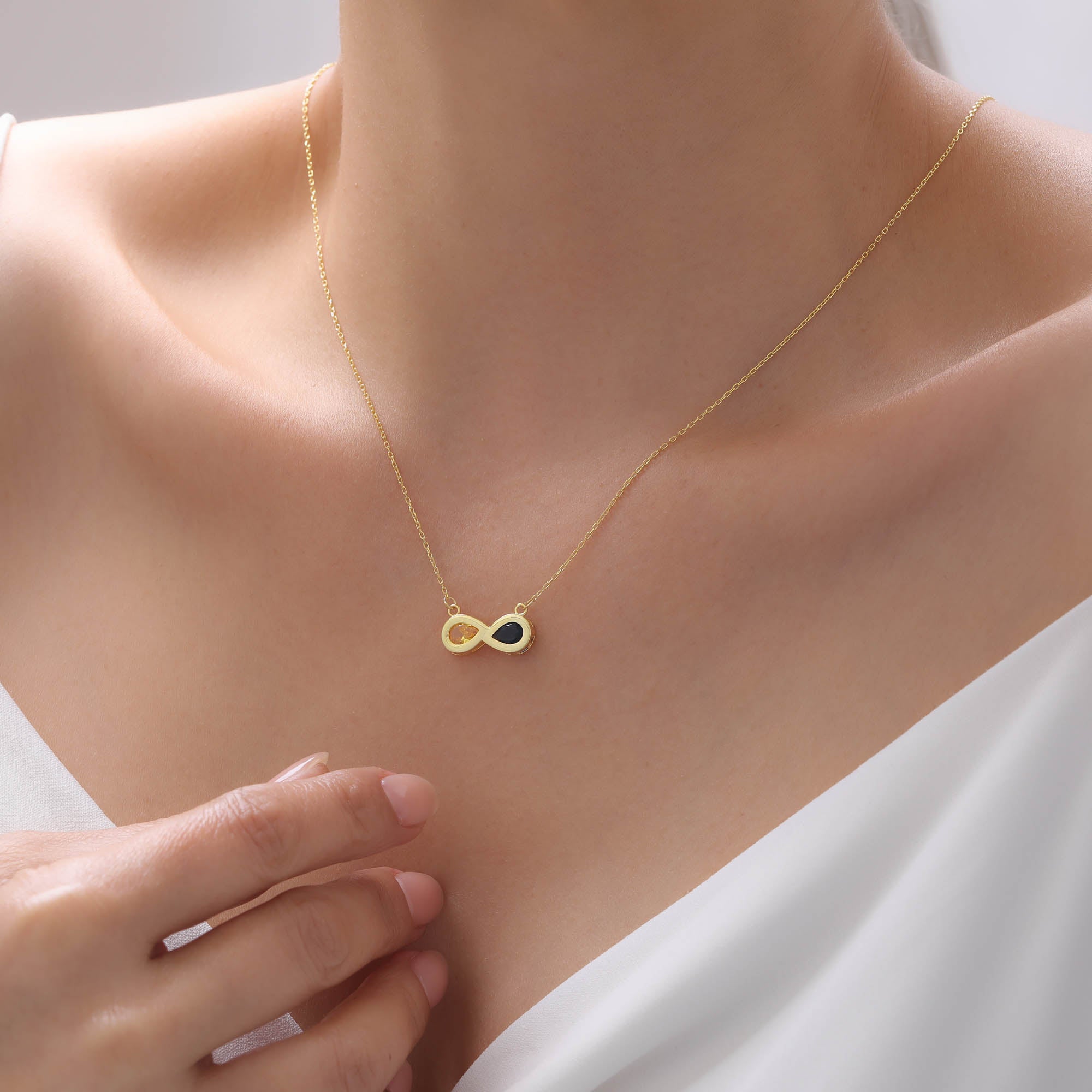 • Personal Touch: A vibrant birthstone, skillfully set within or upon the flowing lines of the infinity symbol, adds a personalized meaning and becomes the focal point of the necklace.