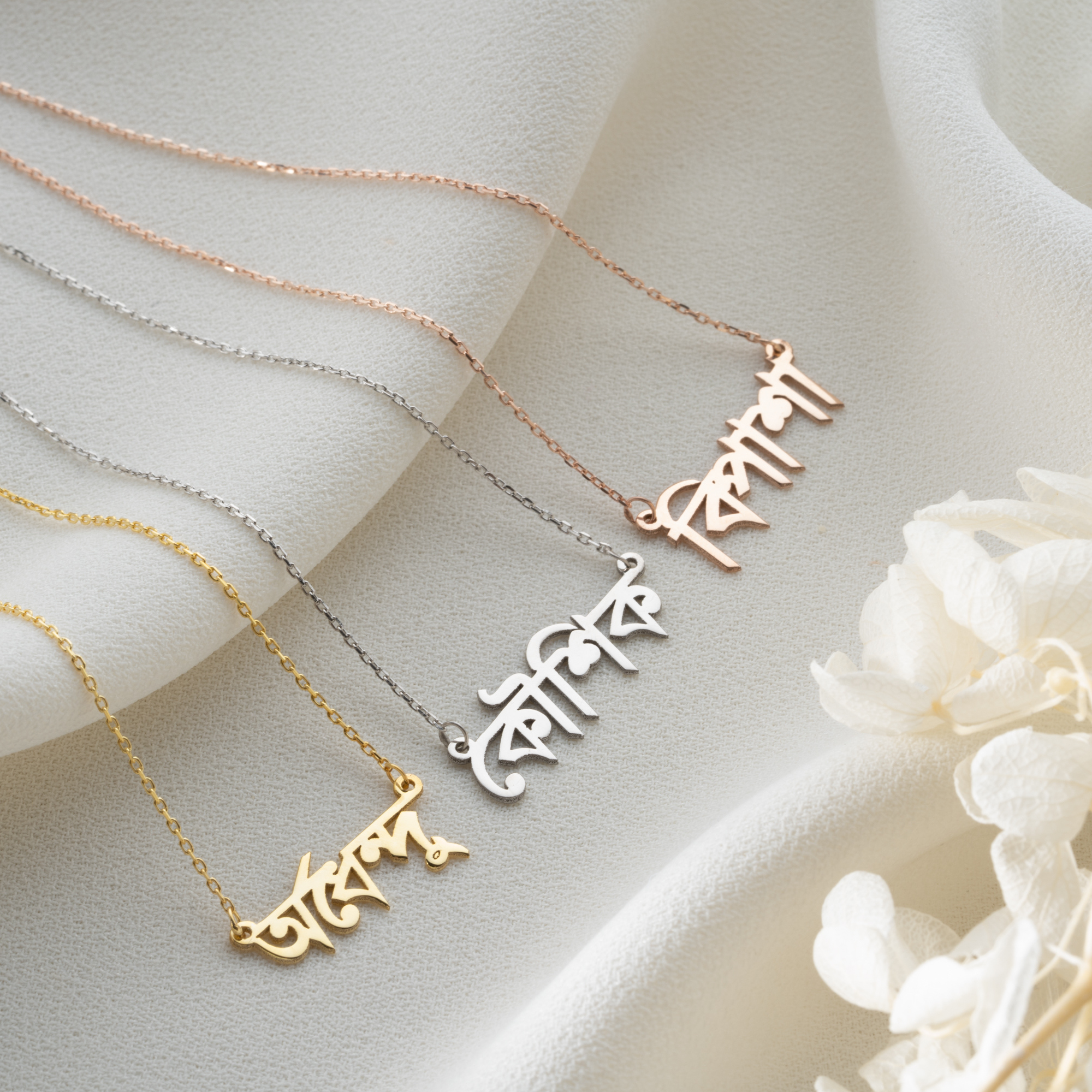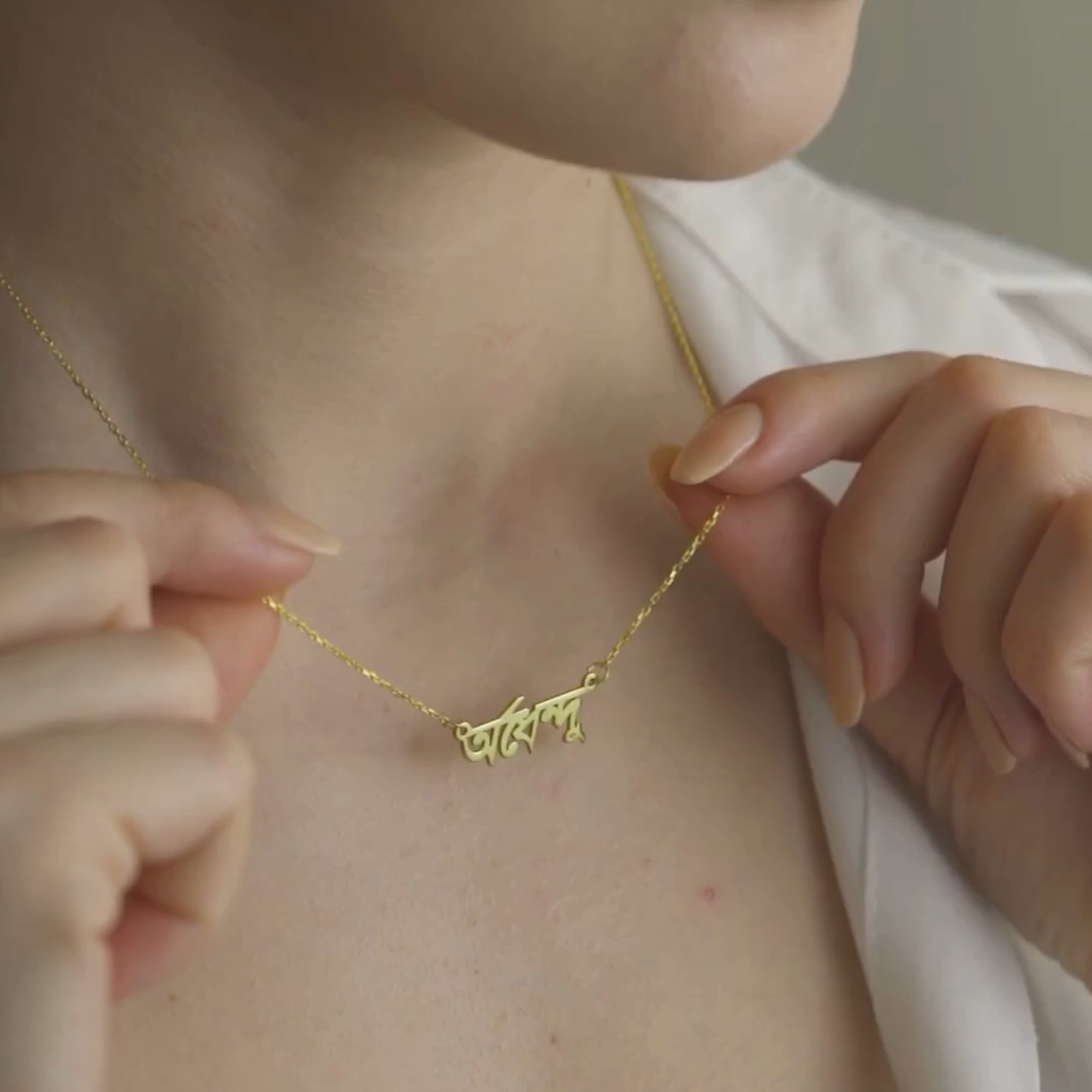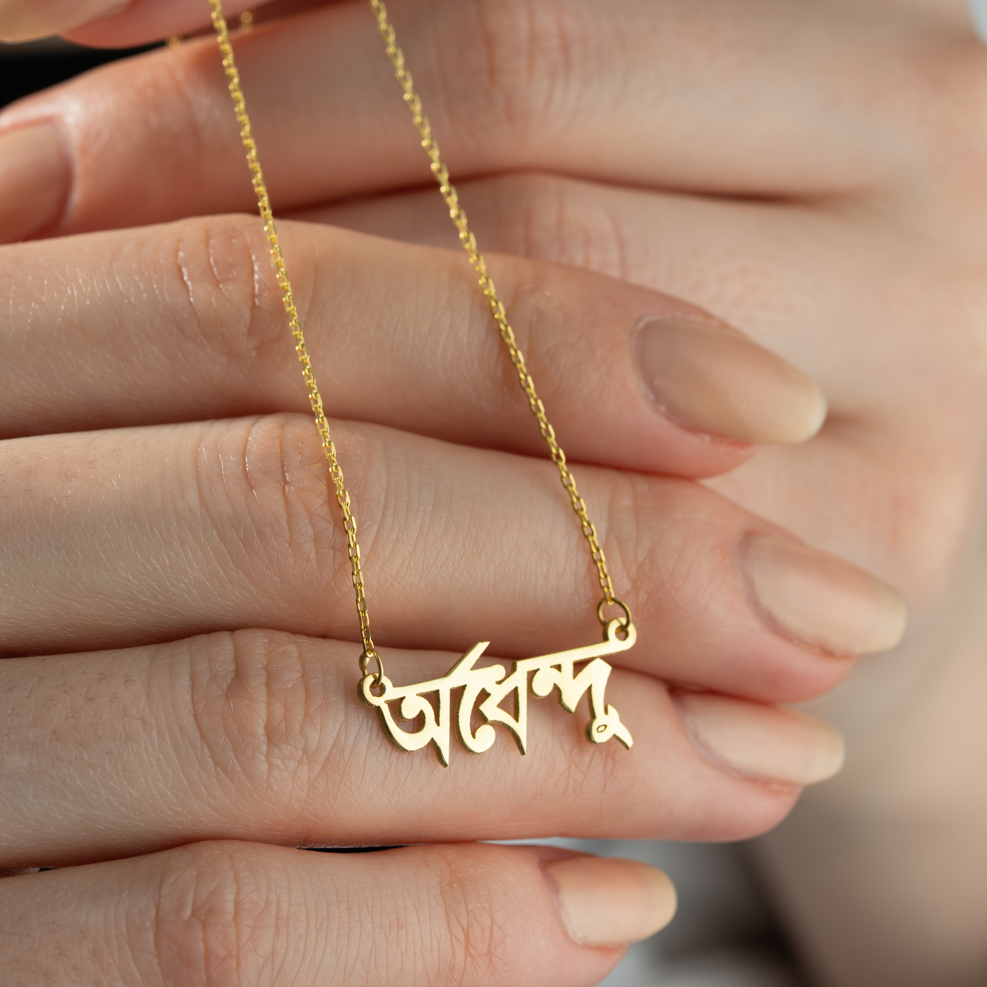Celebrate your roots or a love for one of the world's most melodic languages with our Custom Bengali Name Necklace. Featuring the artistic and flowing characters of the Bangla script, this personalized nameplate turns your name or a special word into a stunning statement piece. It is a perfect fusion of cultural pride and modern minimalist jewelry design.