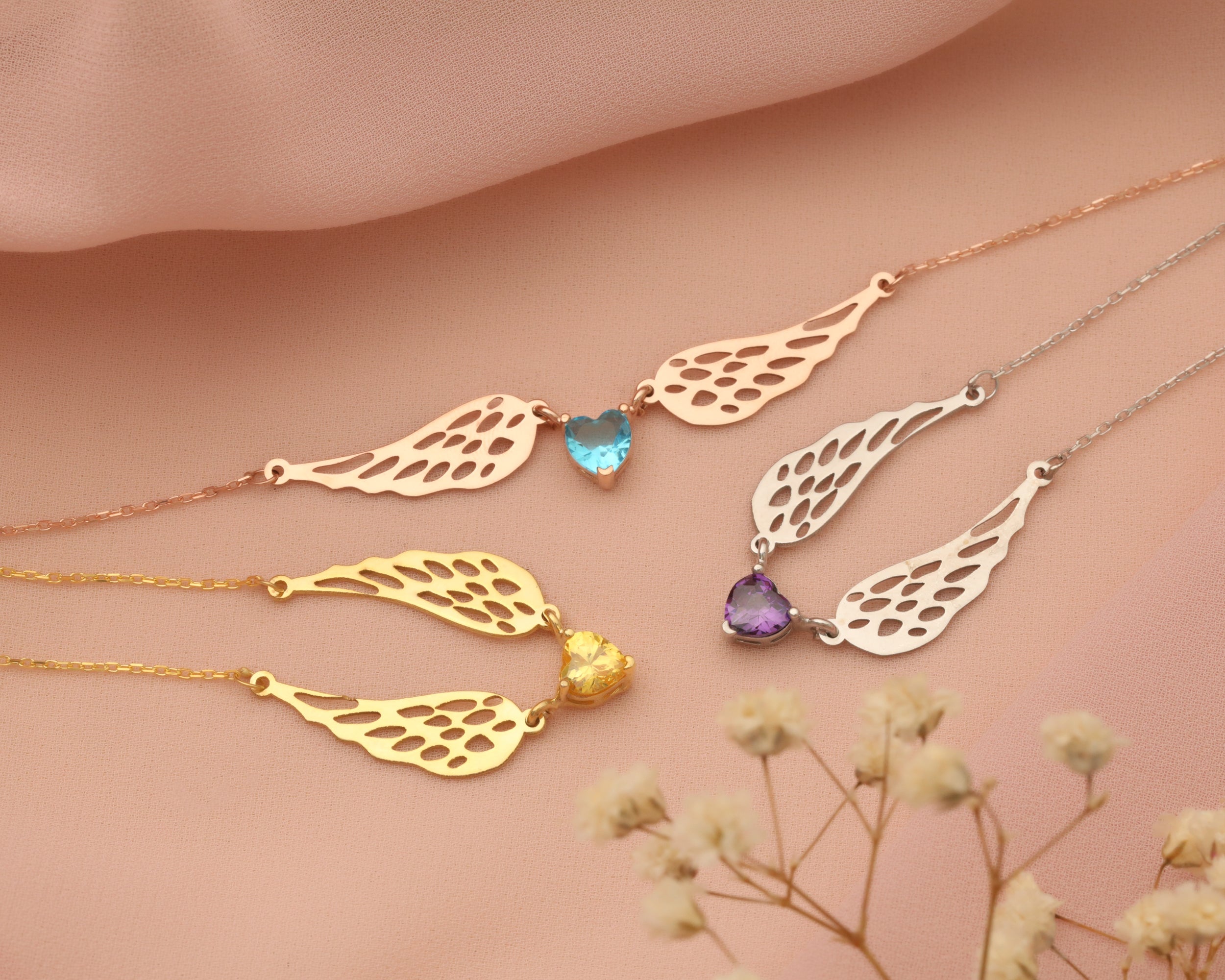 • Protective Symbolism: The openwork, detailed angel wings gently embrace the heart-shaped birthstone. This design symbolizes that angels are watching over you and that your loved ones are always by your side.