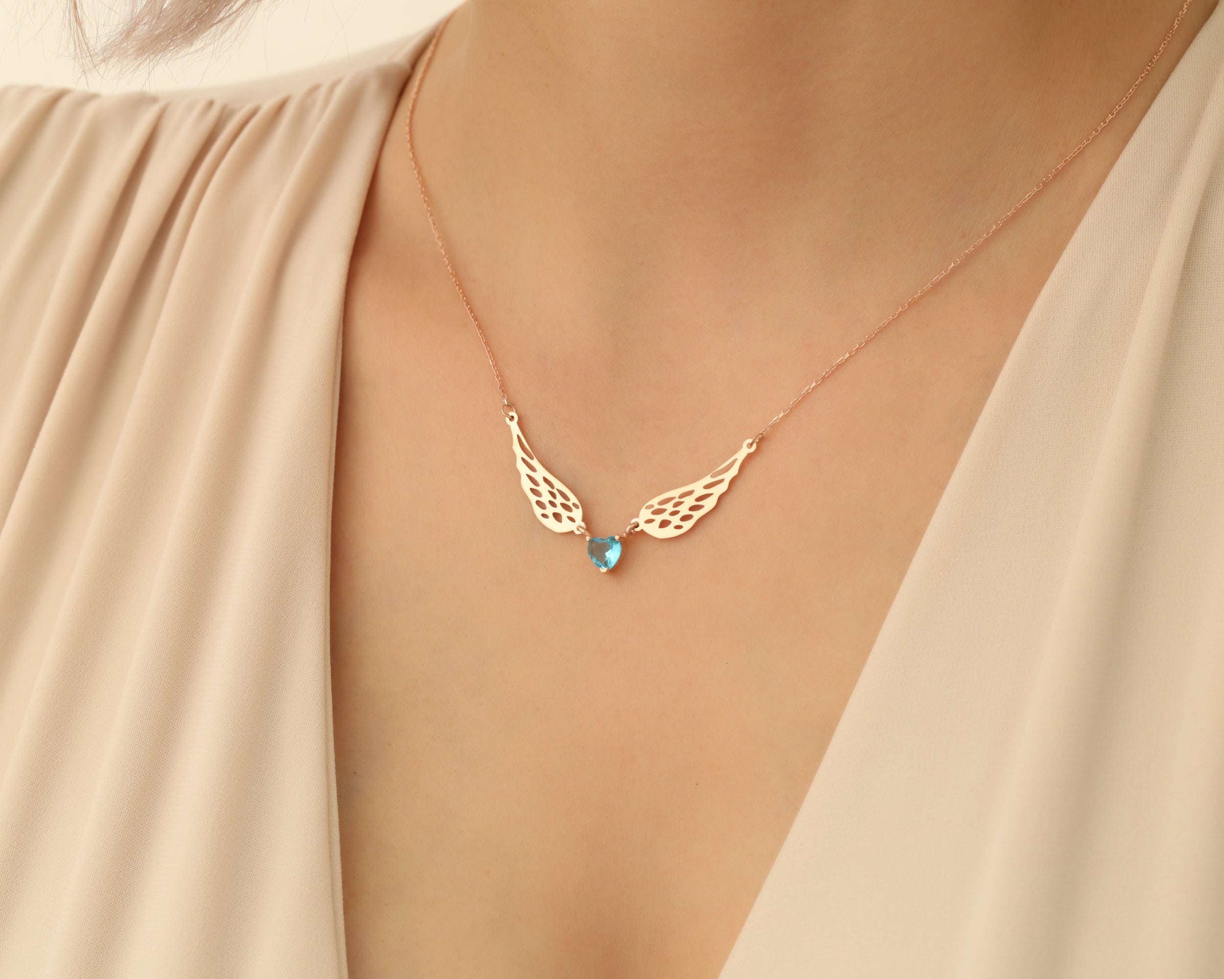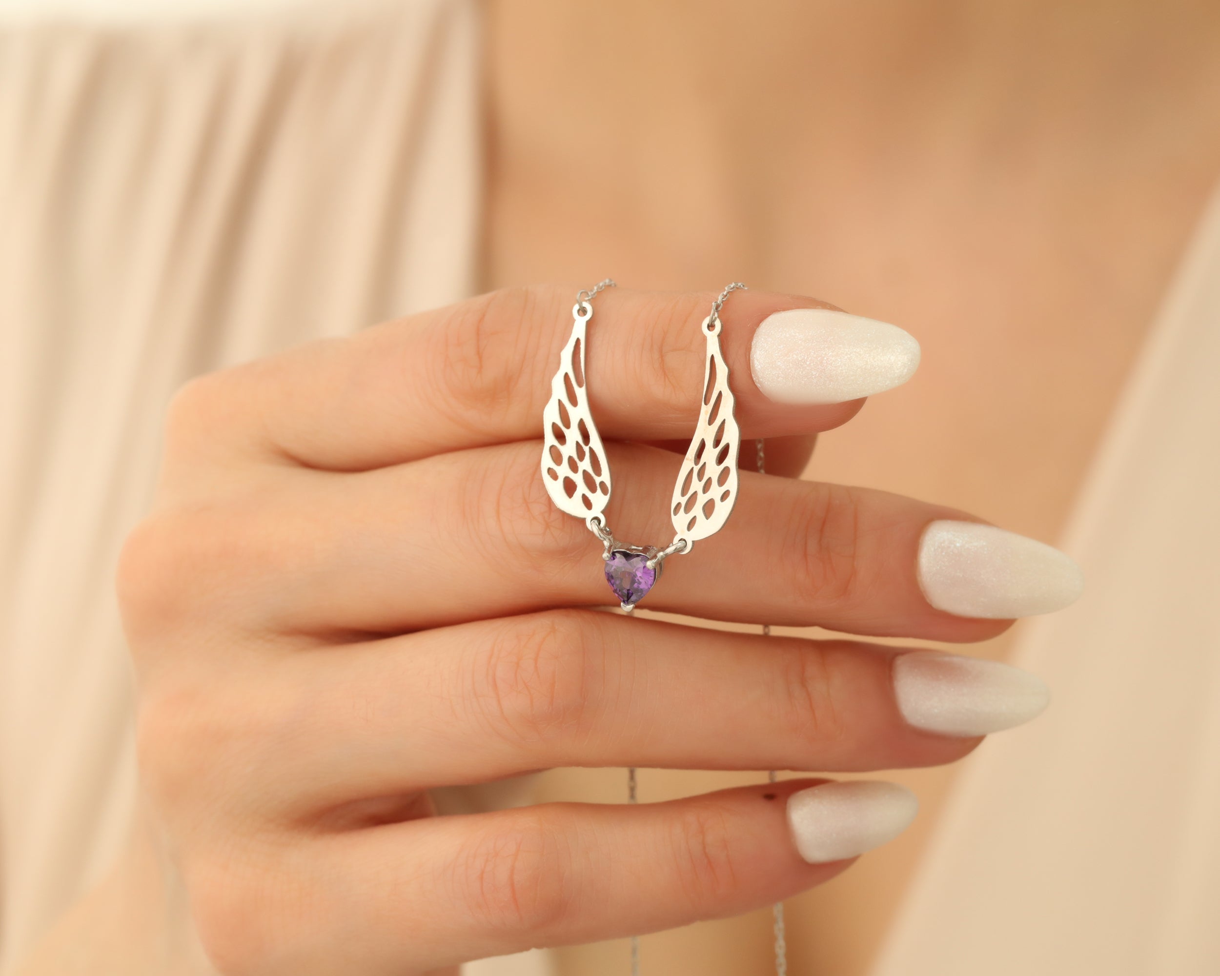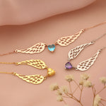 Carry the memory of your loved ones or the energy of your guardian angel with you. This delicate Winged Heart Birthstone Necklace is a symbol of love and protection.